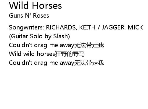 | [03:14.56] | Wild wild horses kuáng yě de yě mǎ |
