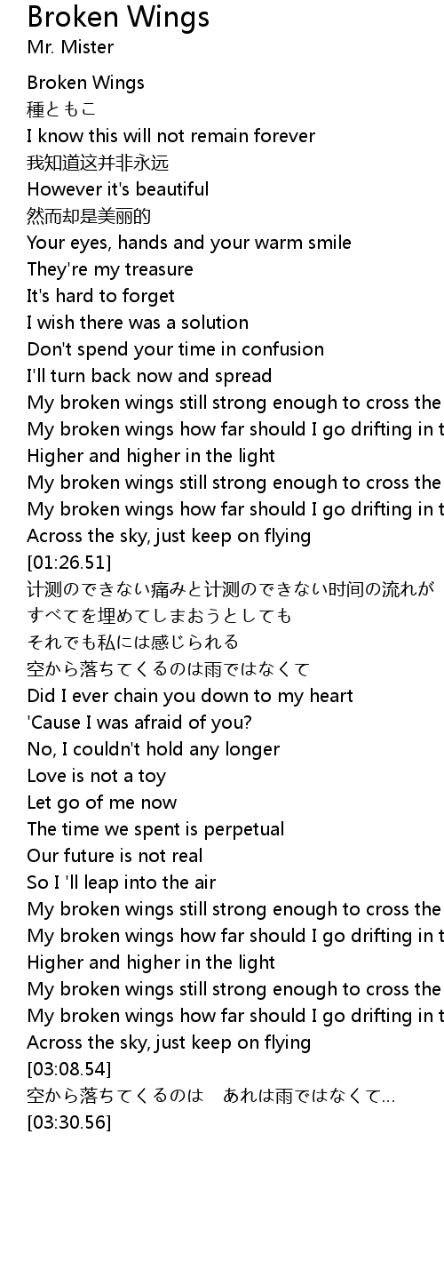 | [00:01.16] | Broken Wings |