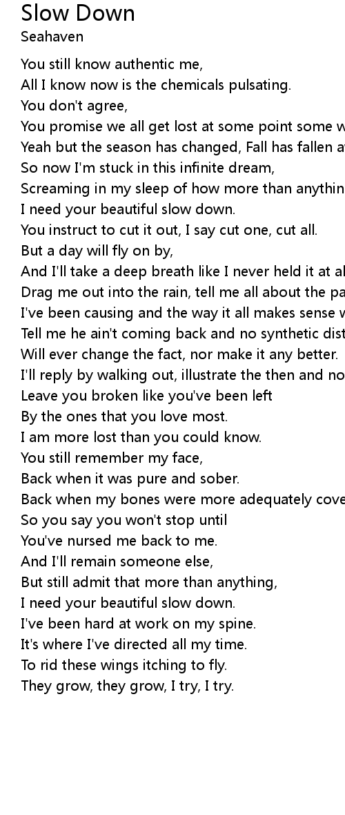 I need your beautiful slow down. |