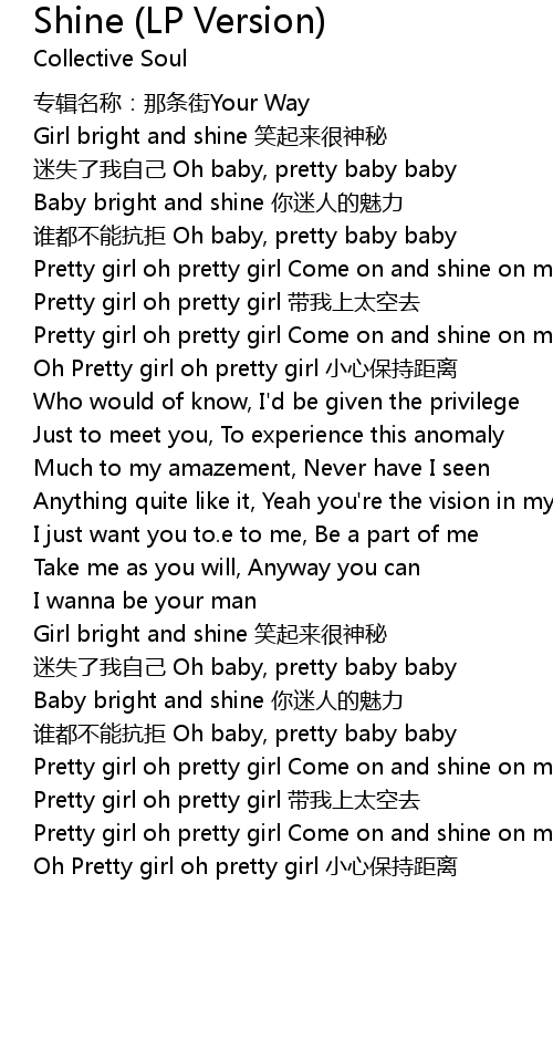 | [00:47.56] | Pretty girl oh pretty girl Come on and shine on me |
