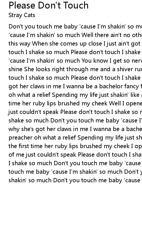 Don't you touch me baby 'cause I'm shakin' so much Don't you touch me baby 'cause I'm shakin' so much Well there ain't no other woman that makes me feel this way When she comes up close I just ain't got a word to say Please don't touch I shake so much Please don't touch I shake so much Don't you touch me baby 'cause I'm shakin' so much You know I get so nervous when I see her eyes that shine She looks right through me and a shiver runs down my spine Please don't touch I shake so much Please don't touch I shake so much I don't know why she's got her claws in me I wanna be a bachelor fancy free Runnin' from the preacher oh what a relief Spending my life just shakin' like a leaf I remember the first time her ruby lips brushed my cheek Well I opened up my mouth but the rest of me just couldn't speak Please don't touch I shake so much Please don't touch I shake so much Don't you touch me baby 'cause I'm shakin' so much I don't know why she's got her claws in me I wanna be a bachelor fancy free Runnin' from the preacher oh what a relief Spending my life just shakin' like a leaf I remember the first time her ruby lips brushed my cheek I opened up my mouth but the rest of me just couldn't speak Please don't touch I shake so much Please don't touch I shake so much Don't you touch me baby 'cause I'm shakin' so much Don't you touch me baby 'cause I'm shakin' so much Don't you touch me baby 'cause I'm shakin' so much Don't you touch me baby 'cause I'm shakin' so much |