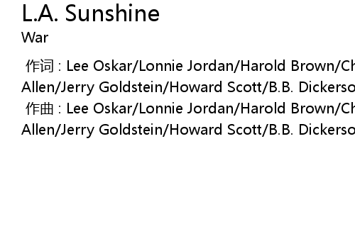 | [00:00.000] | zuò qǔ : Lee Oskar Lonnie Jordan Harold Brown Charles Miller Dee Allen Jerry Goldstein Howard Scott B. B. Dickerson |
