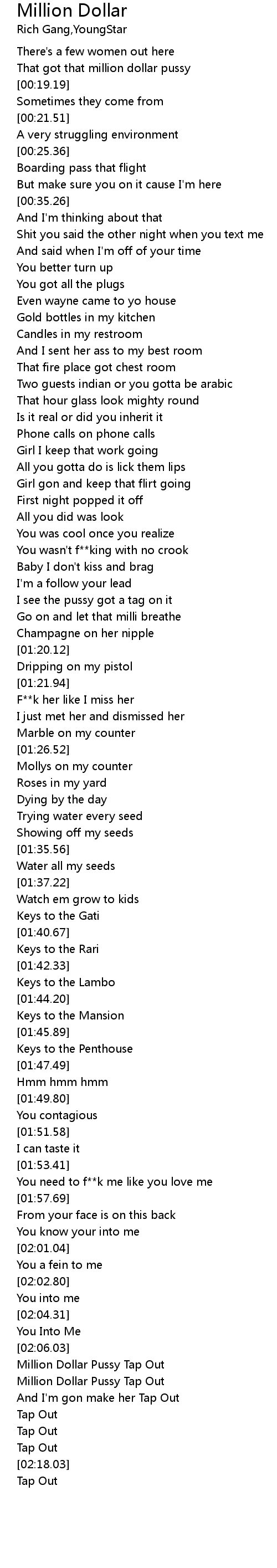 | [00:16.72] | That got that million dollar pussy |