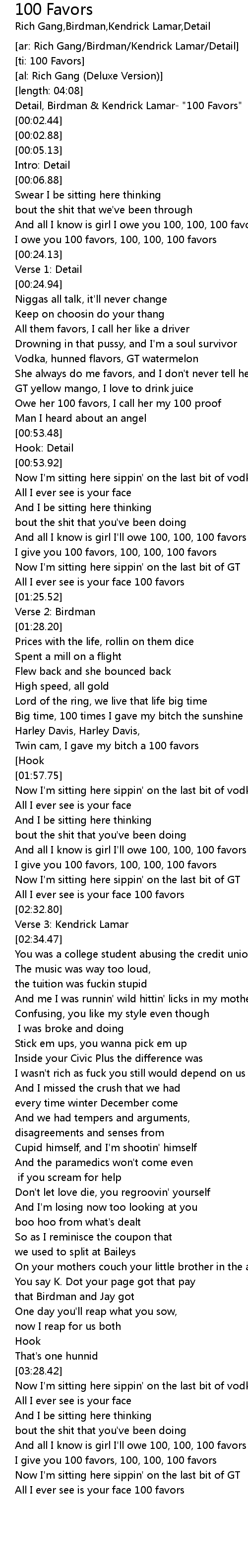 Detail, Birdman & Kendrick Lamar- "100 Favors" |
