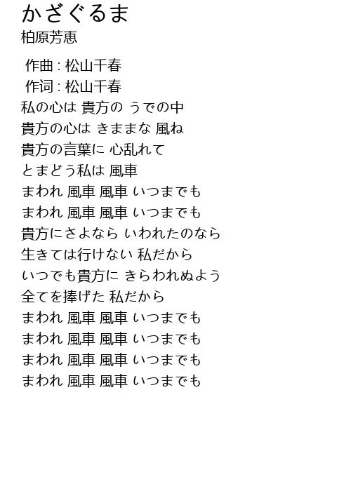 | [04:03.90] | まわれ 風車 風車 いつまでも |