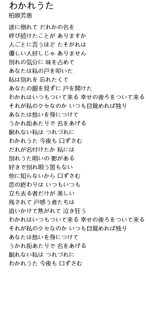 わかれはいつもついて来る 幸せの後ろをついて来る |