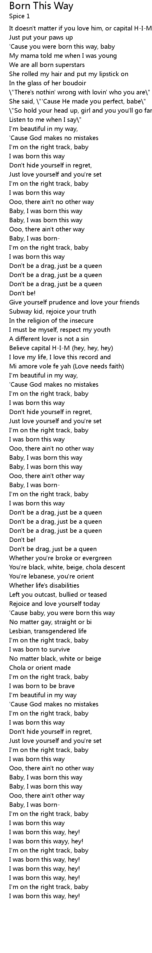 Baby, I was born this way |