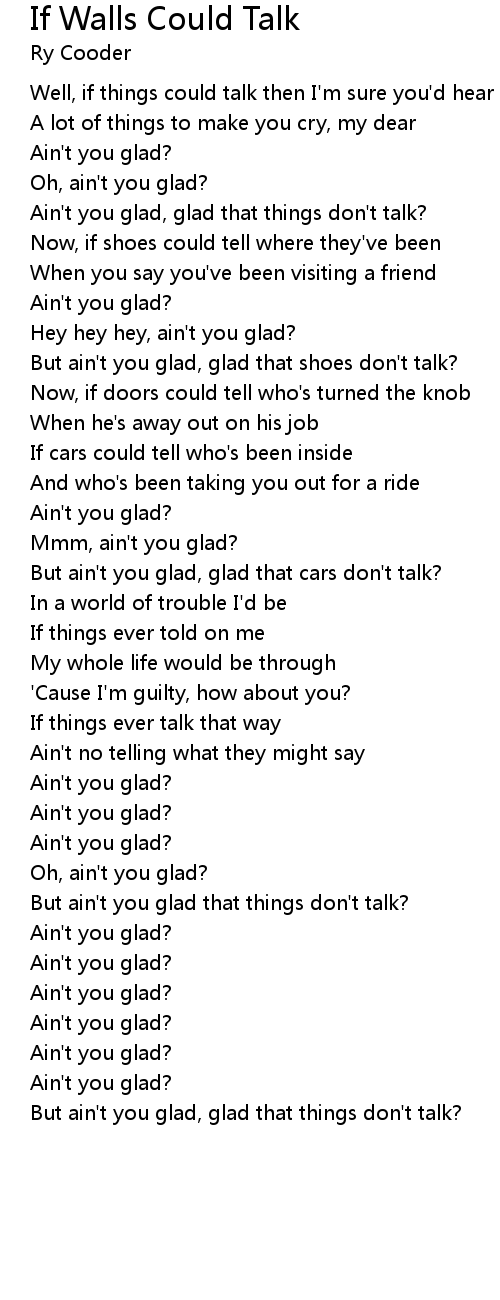 | But ain't you glad, glad that things don't talk? |
