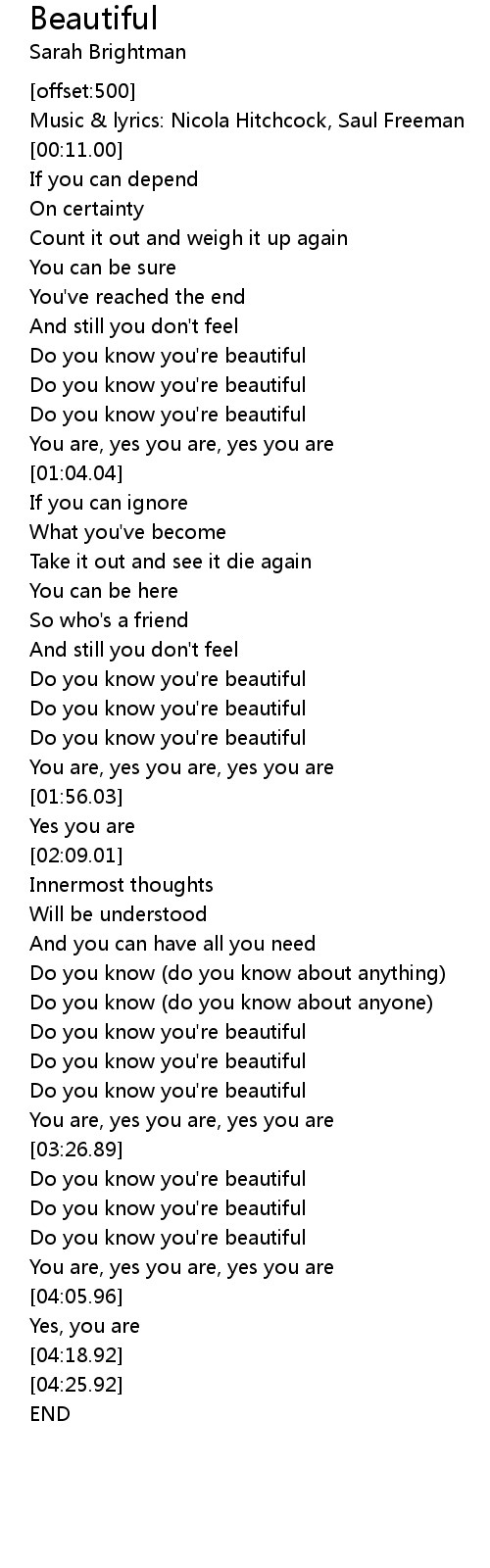 Do you know you're beautiful |