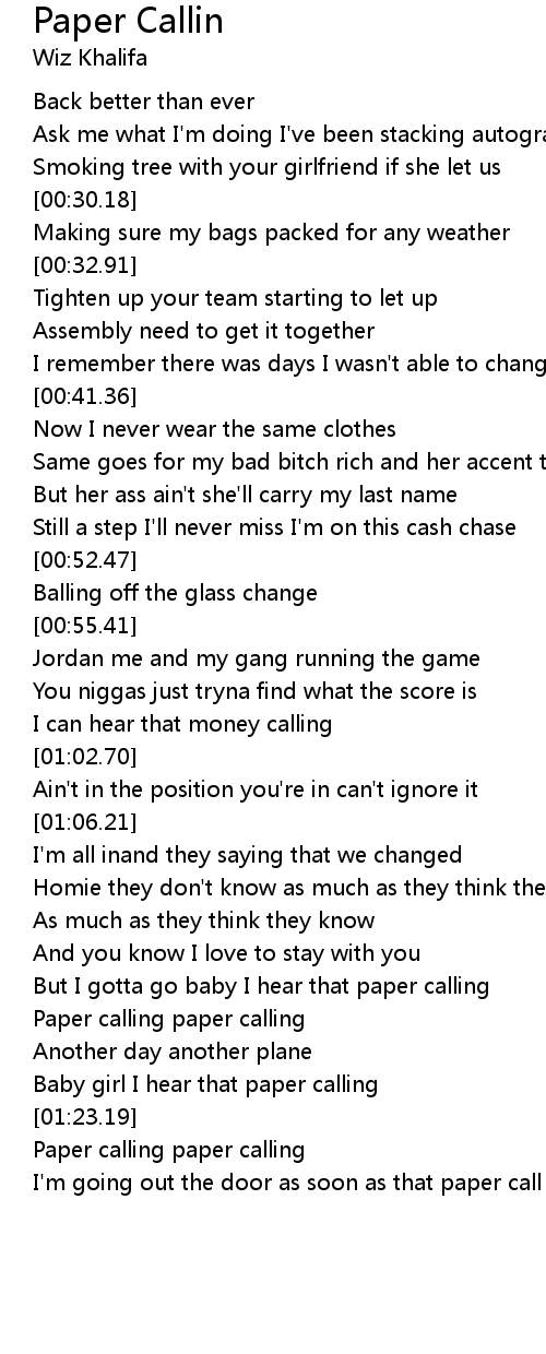 But I gotta go baby I hear that paper calling |
