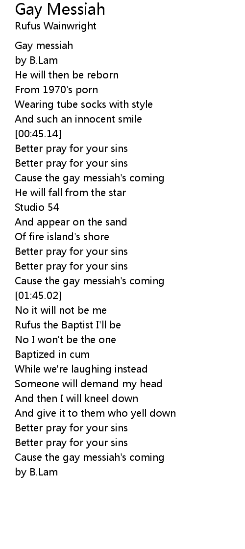 Cause the gay messiah's coming |