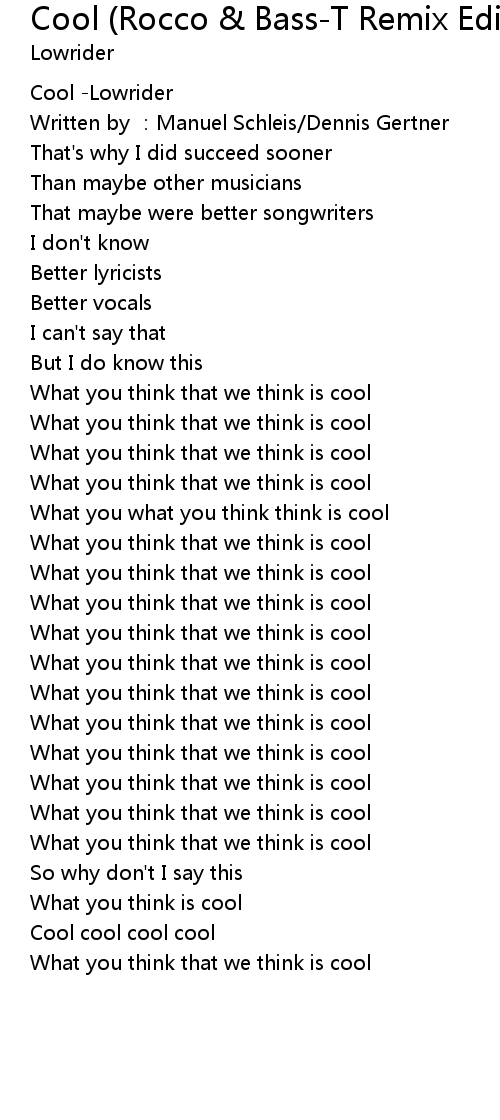 | [01:53.70] | What you think that we think is cool |