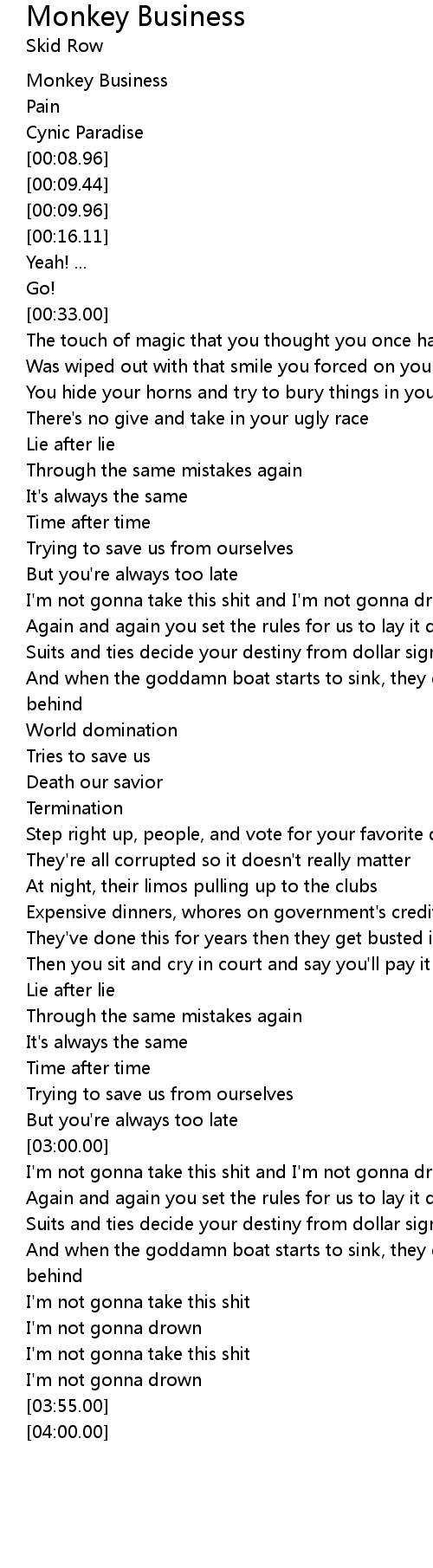 | [01:36.00] | I'm not gonna take this shit and I'm not gonna drown |