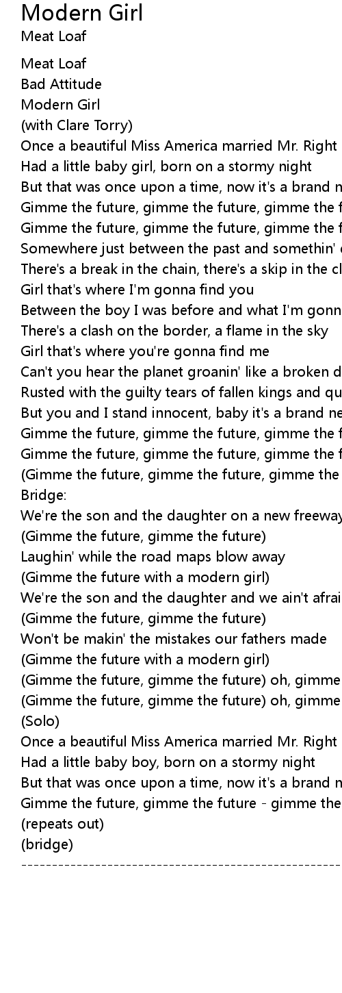 | (Gimme the future with a modern girl) | |