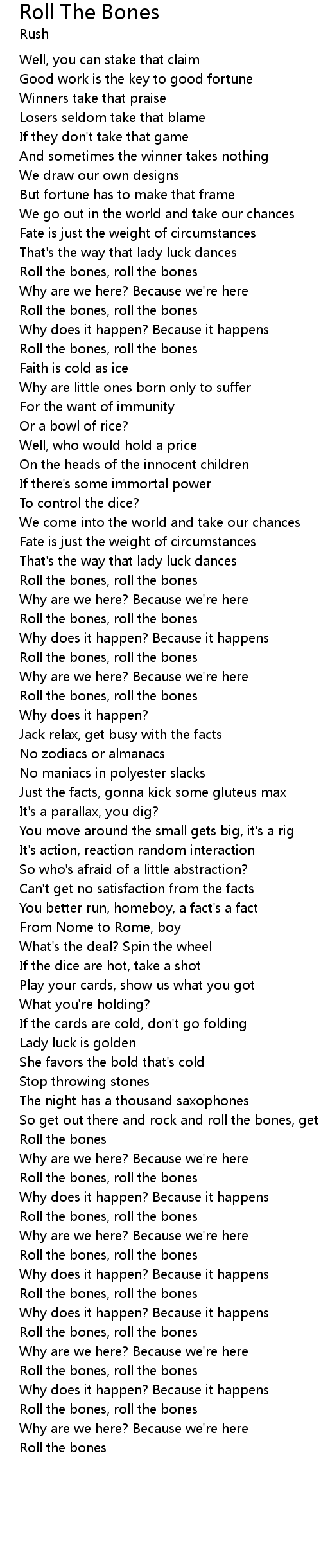| Roll the bones, roll the bones | |