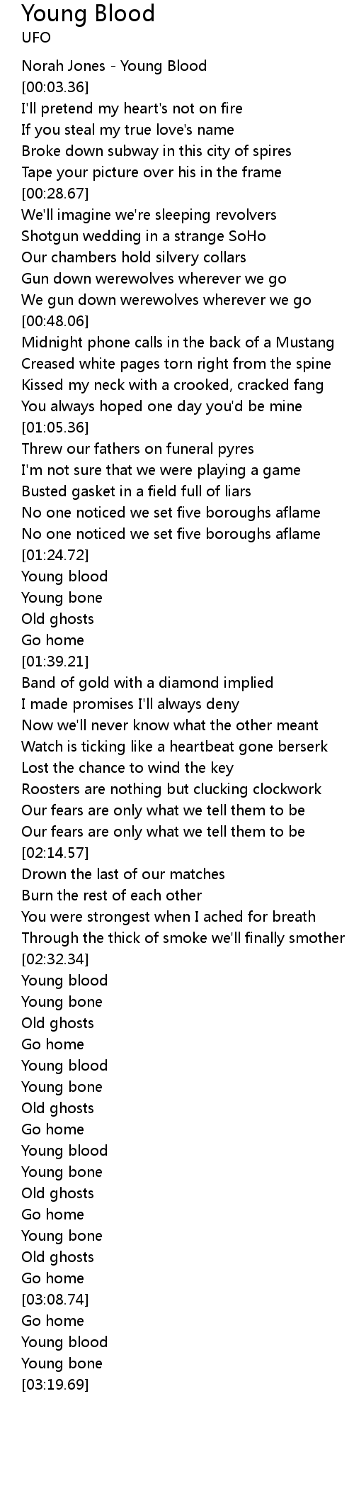 | [00:01.35] | Norah Jones - Young Blood |
