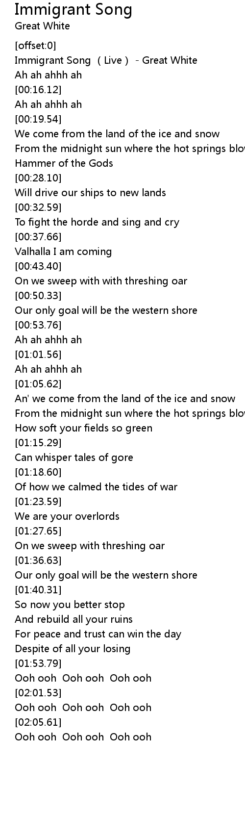 | [00:02.81] | Immigrant Song (Live) - Great White |