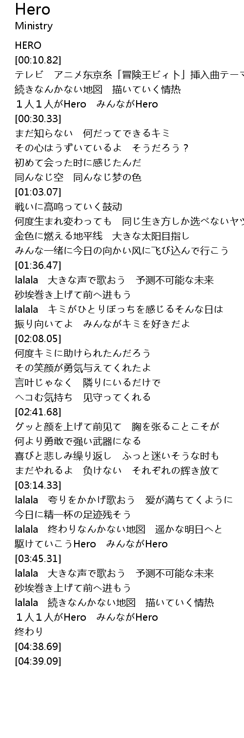 | [04:21.99] | 1人1人がHero みんながHero |