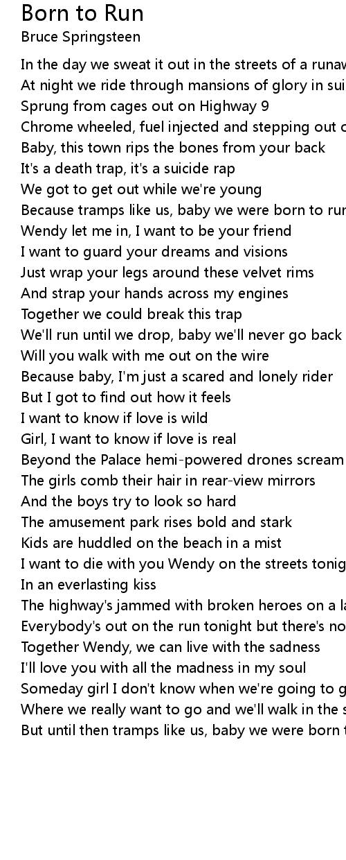 Because tramps like us, baby we were born to run |