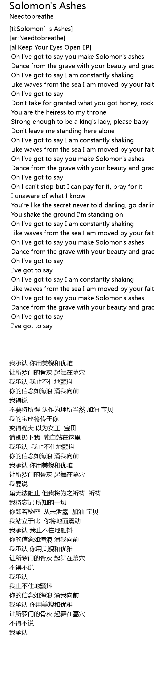 | [01:47.00] | Oh I've got to say you make Solomon's ashes |