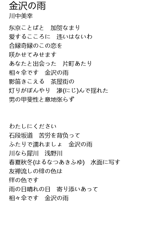| Song | 金沢の雨 |