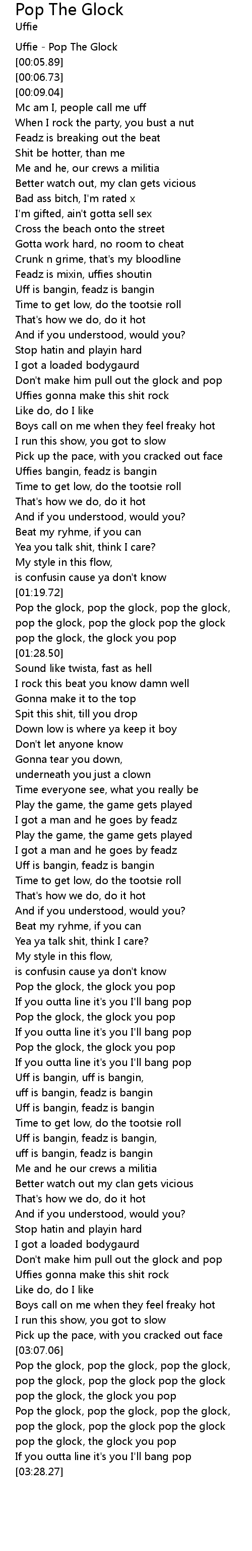 pop the glock, pop the glock pop the glock |