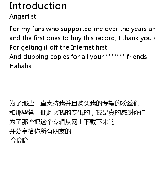 | [00:39.71] | And dubbing copies for all your ******* friends |