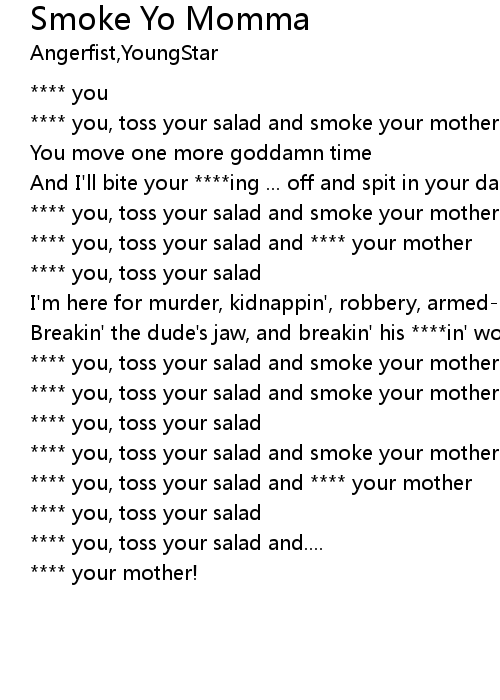 | [01:08.05] | **** you, toss your salad and **** your mother |