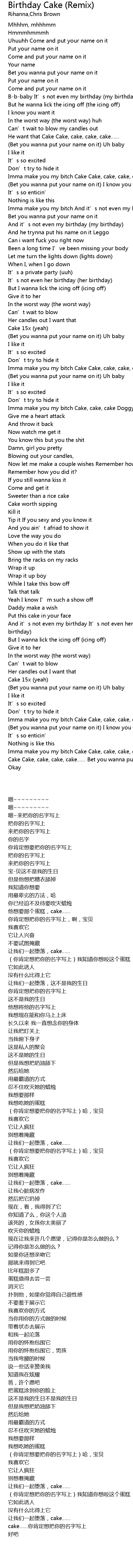 | [00:46.43] | Imma make you my bitch Cake Cake, cake, cake, cake…… |