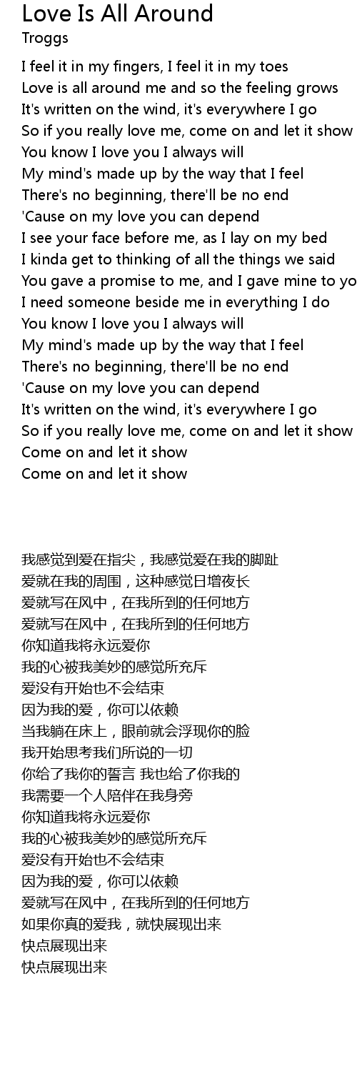 Love is all around me and so the feeling grows |