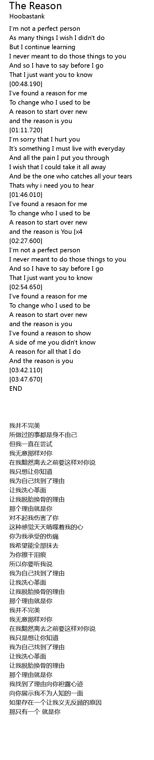 | [02:04.720]and the reason is You [x4] |