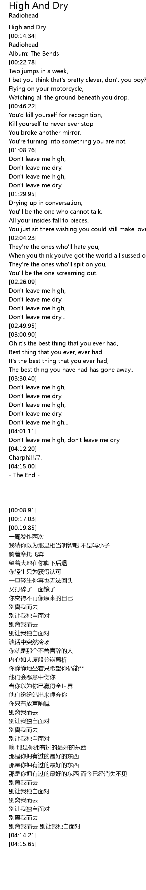 | [04:03.38] | Don' t leave me high, don' t leave me dry. |