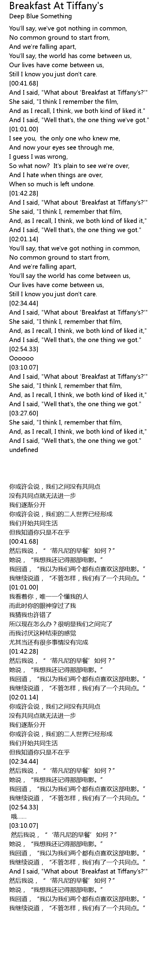 And I said, "What about 'Breakfast at Tiffany's?'" |