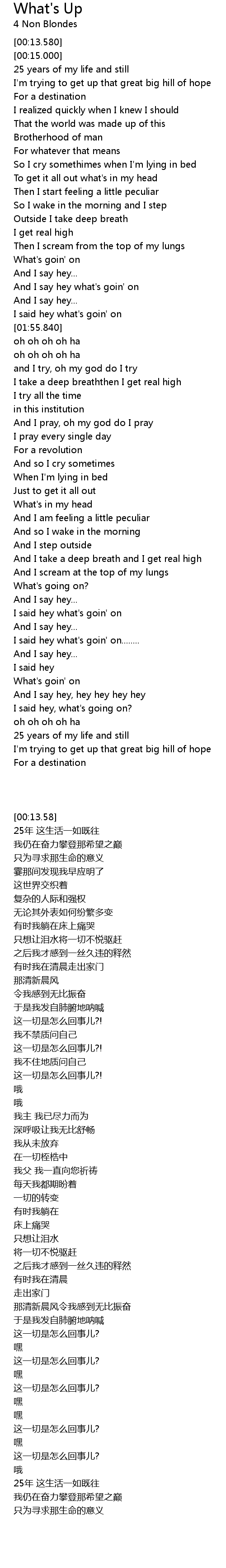 And I say hey what's goin' on |