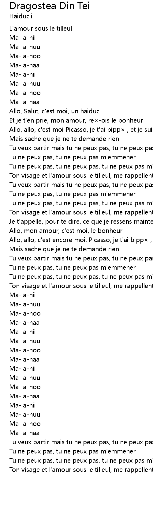 | Ton visage et l' amour sous le tilleul, me rappellent tes yeux |