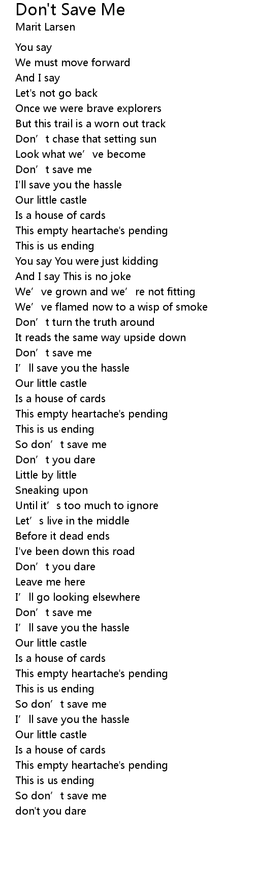 | [03:02.87] | So don' t save me |