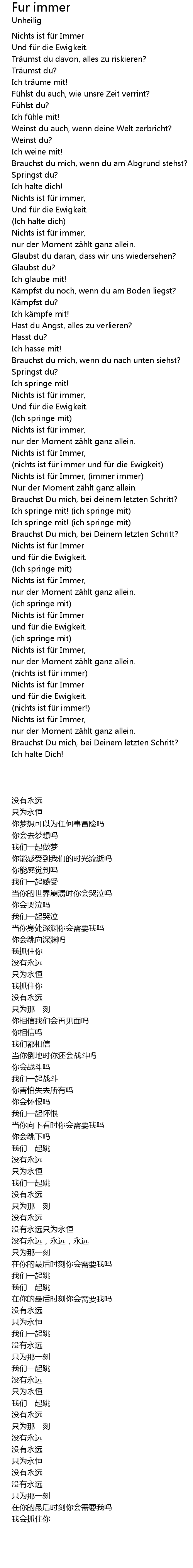 | [01:46.68] | Nichts ist fü r Immer, immer immer |