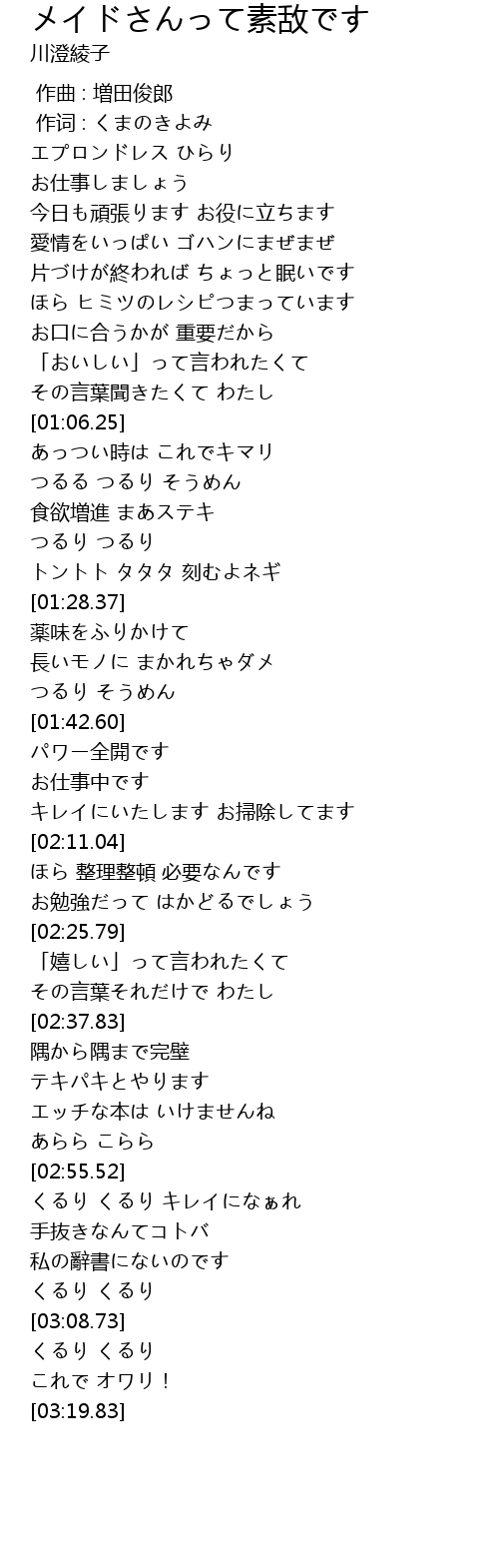 | [00:14.49] | エプロンドレス ひらり |