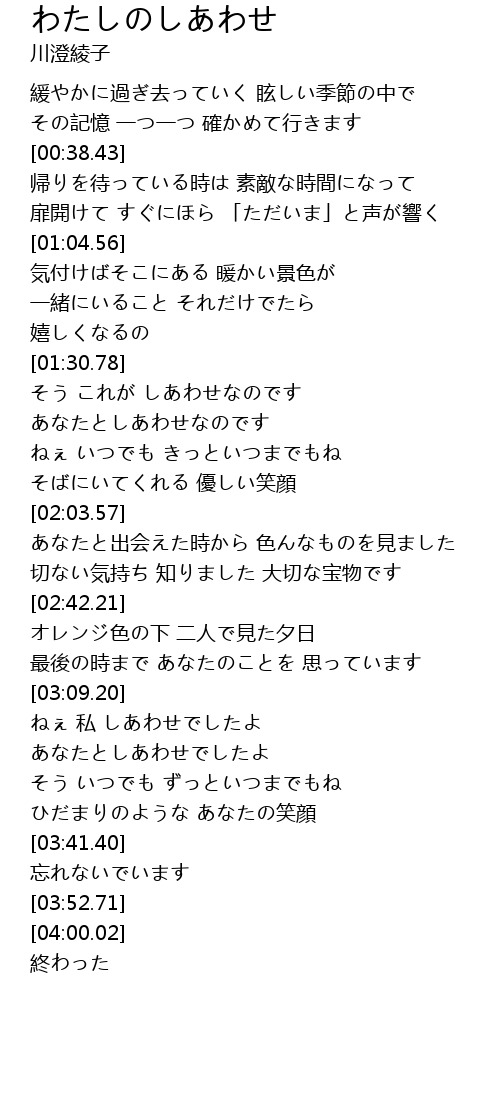 | [03:10.44] | ねぇ 私 しあわせでしたよ |
