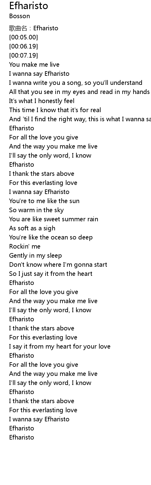 | [00:01.19] | gē qǔ míng: Efharisto |