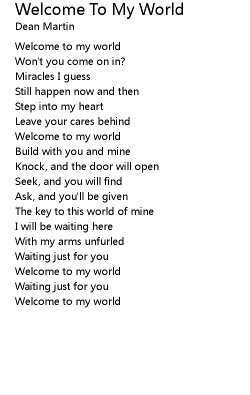 | Song | Welcome To My World |