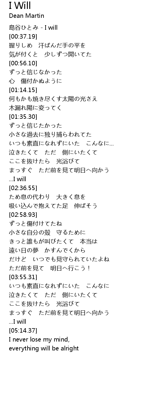 | [00:00.00] | 島谷ひとみ - I will |