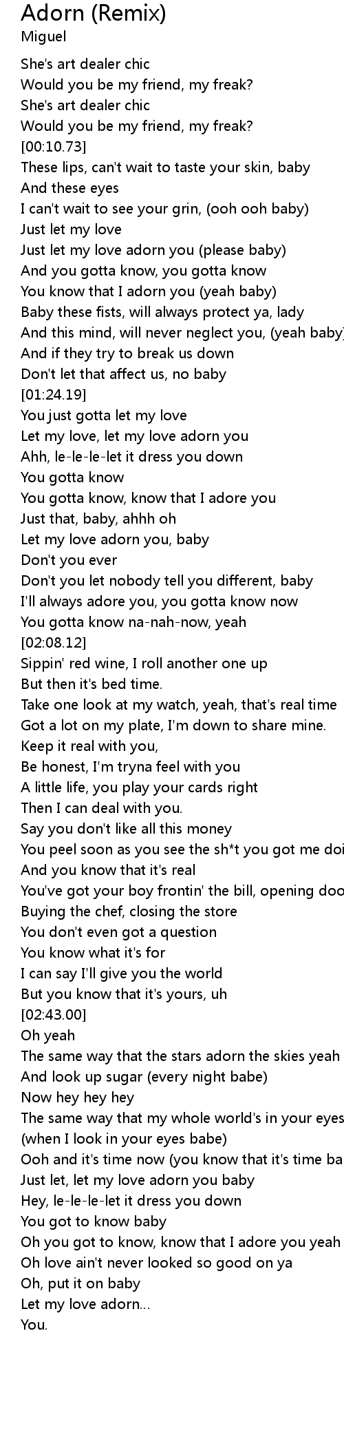 | [00:46.99] | You know that I adorn you yeah baby |