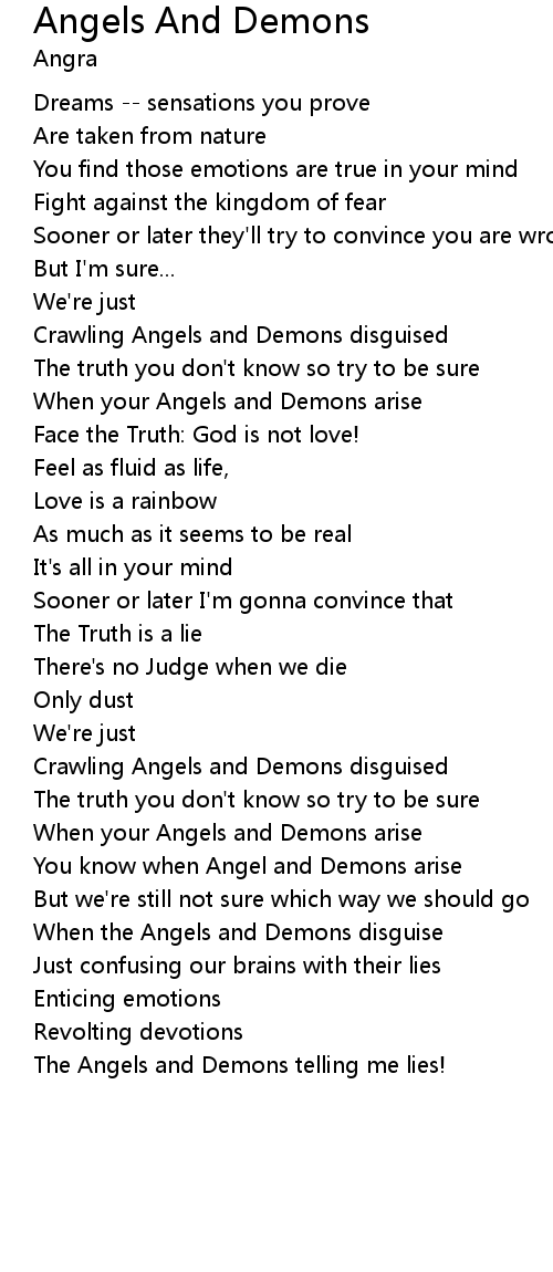 You know when Angel and Demons arise |