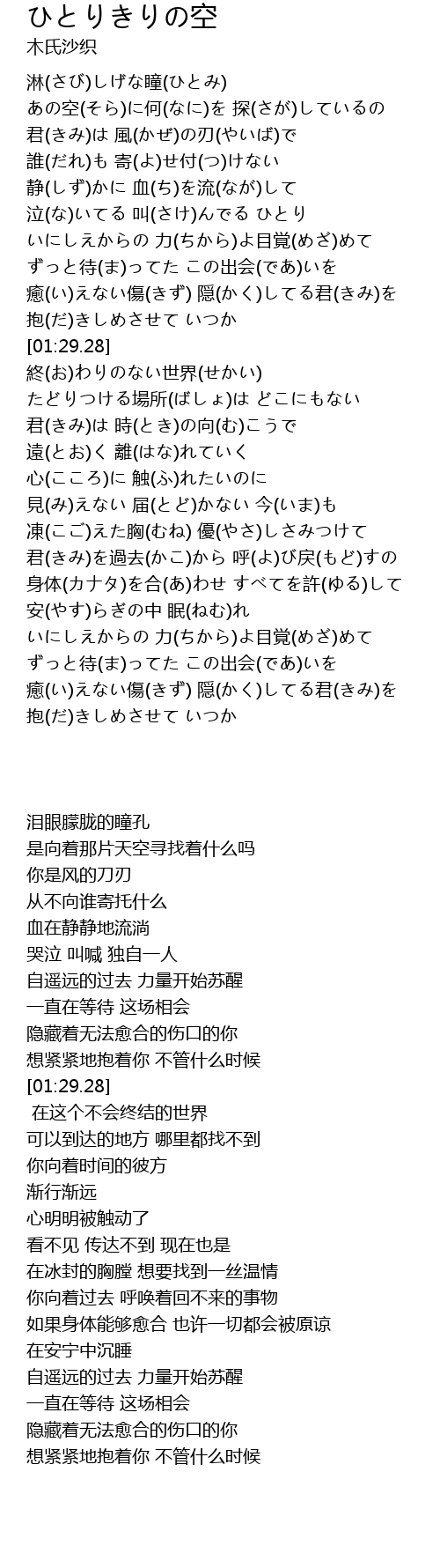 | [00:23.71] | あの空(そら)に何(なに)を 探(さが)しているの |