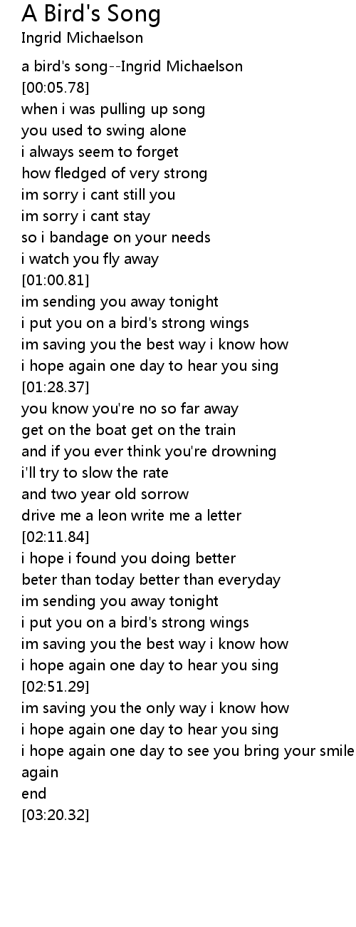 a bird's song--Ingrid Michaelson |