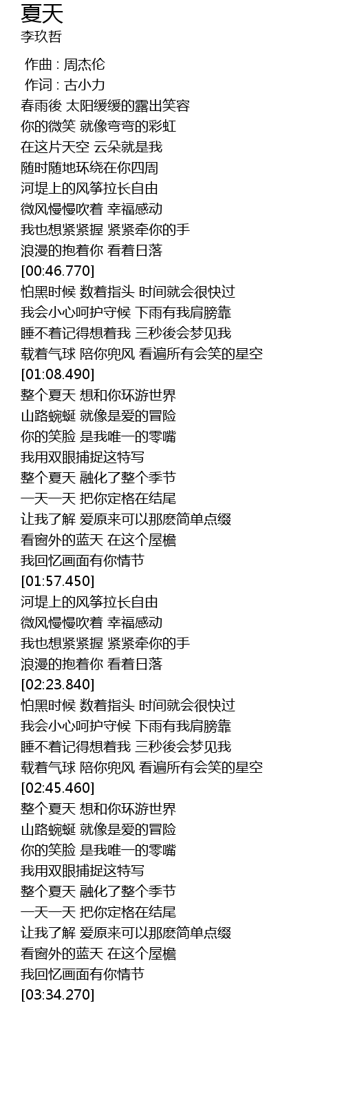 | [02:45.870] | 整个夏天 想和你环游世界 |