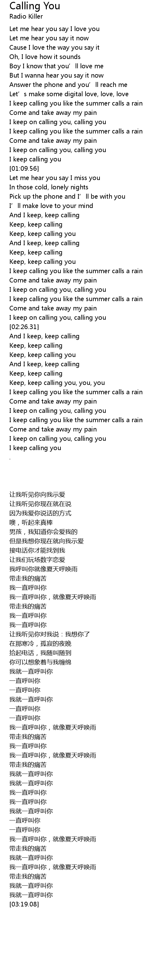 | [02:56.43] | I keep on calling you, calling you |