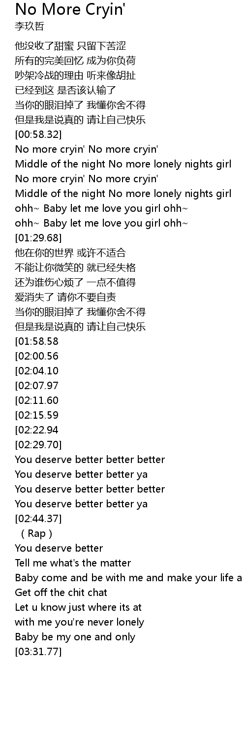 | [01:08.25] | No more cryin' No more cryin' |