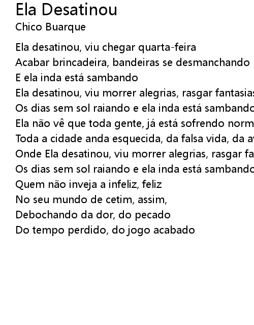 | Ela desatinou, viu chegar quartafeira | |
